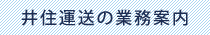 井住運送は大正5年創業、昭和4年設立。以来、移り変わる時の中、お預かりした荷物を安全・迅速・確実にお届けすることで、人々の暮らしを守り続けてまいりました。いままでも、これからも、世の中のさまざまな活動を支える仕事に、「物流職人」井住運送はこだわり続けます。